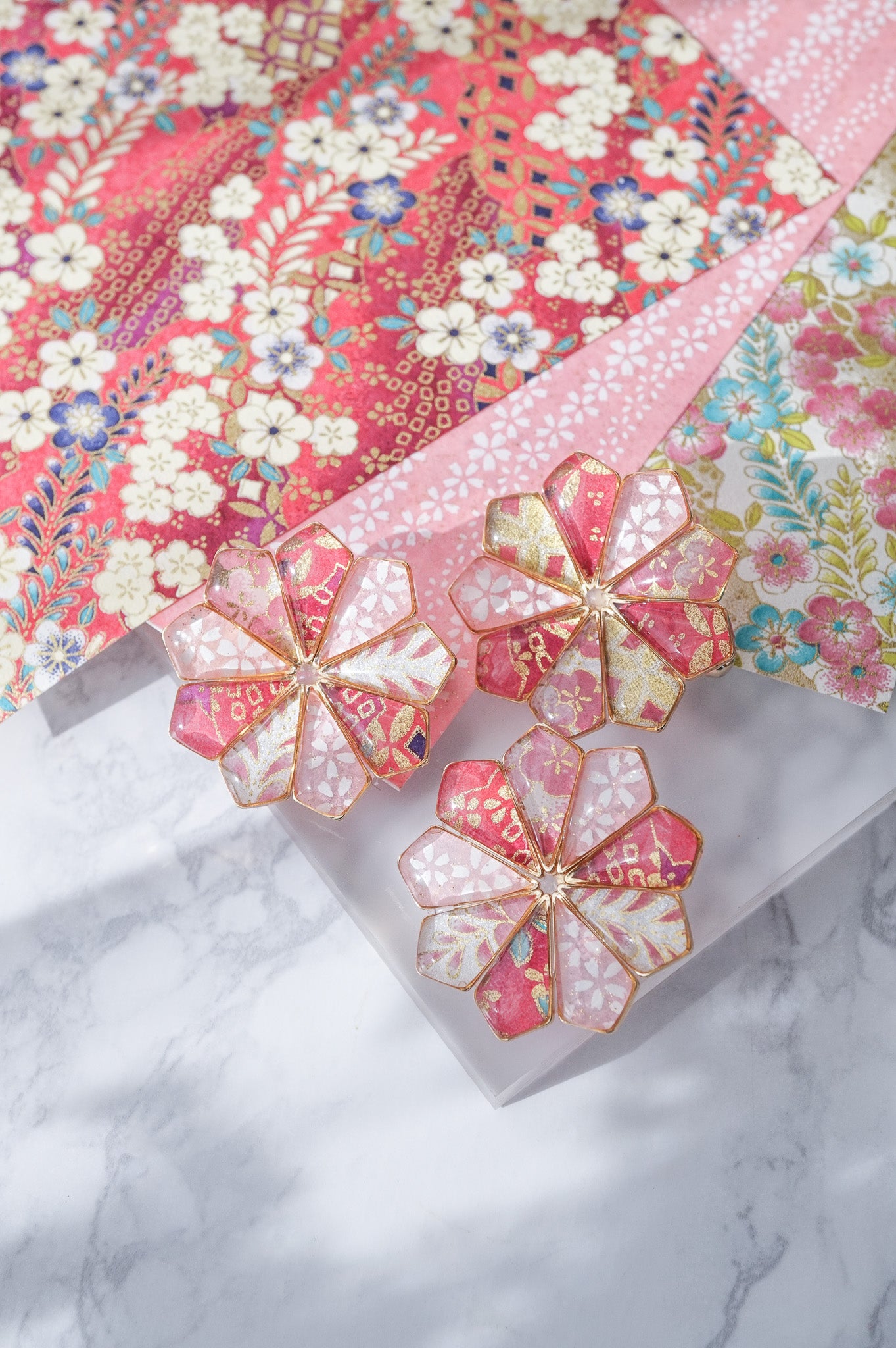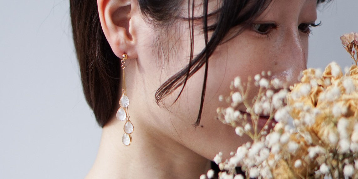 優しく降り注ぐ春の暖かさをイメージした耳飾り。淡い色合いで優しく光を反射する淡水パールが上品なアクセサリーです。 天然のパールは1点ずつ色や形に個性があり、和紙の色に合わせてデザイナーが丁寧に合わせて選んでいます。 和紙とガラス玉で作られた和紙のビーズ本体は、ガラスの厚みで色がより深く見え、美しく湾曲しています。 14金ゴールドフィルドピアスについて、キャッチ部分に揺れる小粒な淡水パールがついているため、お持ちの他のピアスと組み合わせて使うこともできます。また、普通のキャッチを使えば、パール一粒のピアスとしても使うことができるため、3通りの使い方ができるピアスです。