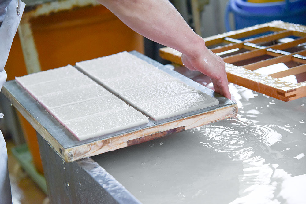 Using fibers from banana trees grown in Zambia, Africa, the paper is made at a traditional Echizen washi paper factory in Japan, and each box is handcrafted by Japanese artisans.